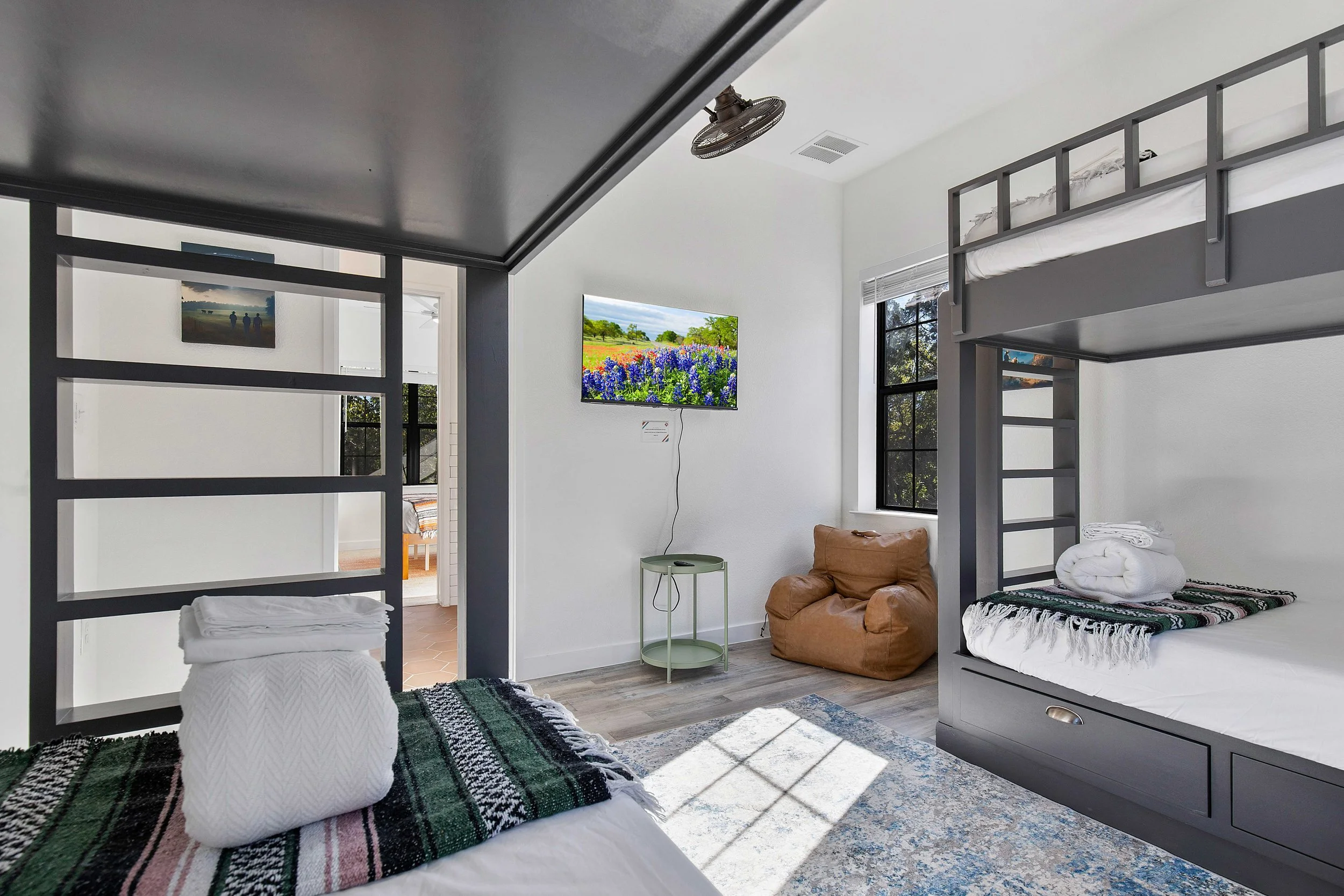 Bunk room with 2 twin bunk sets