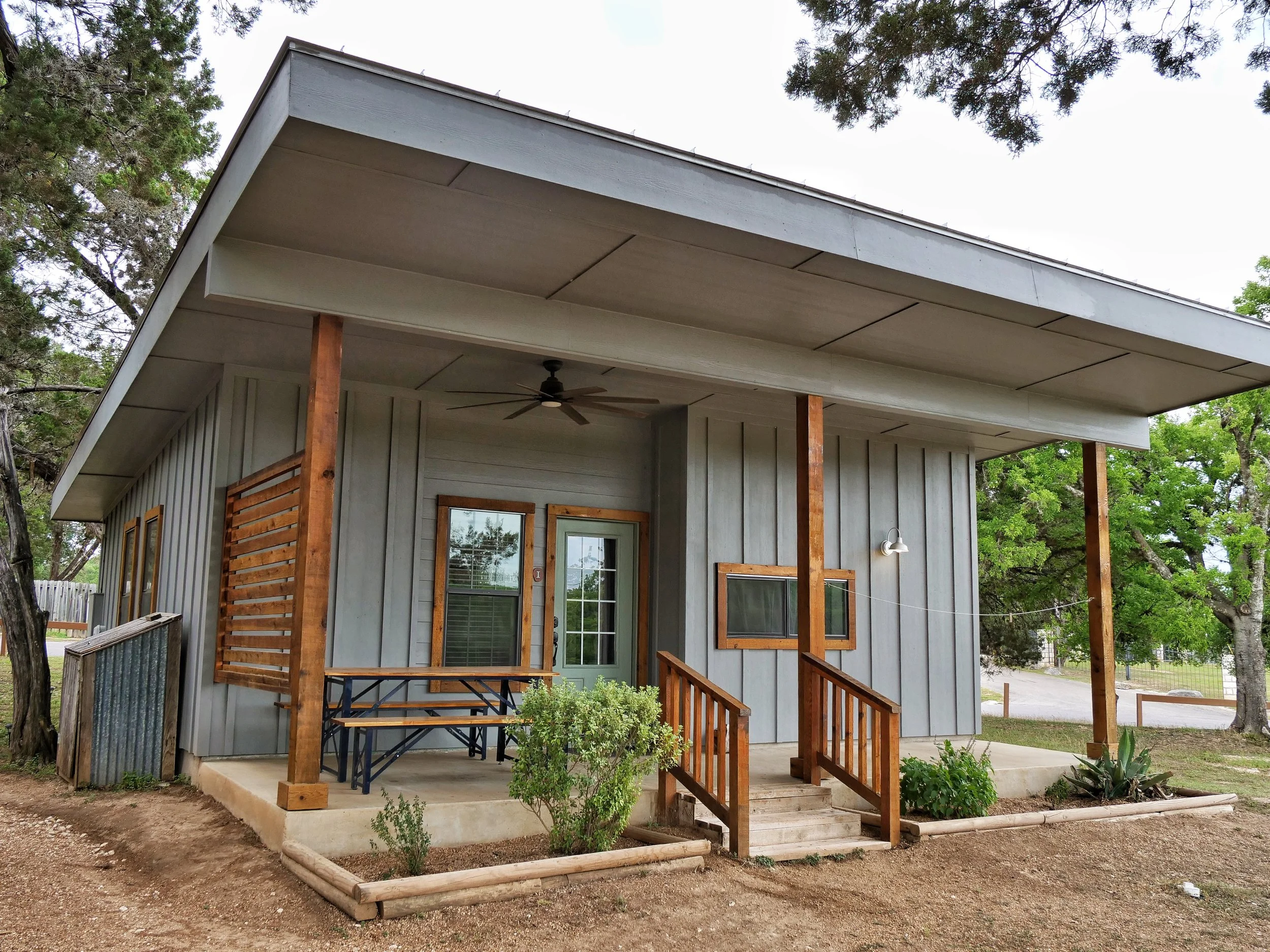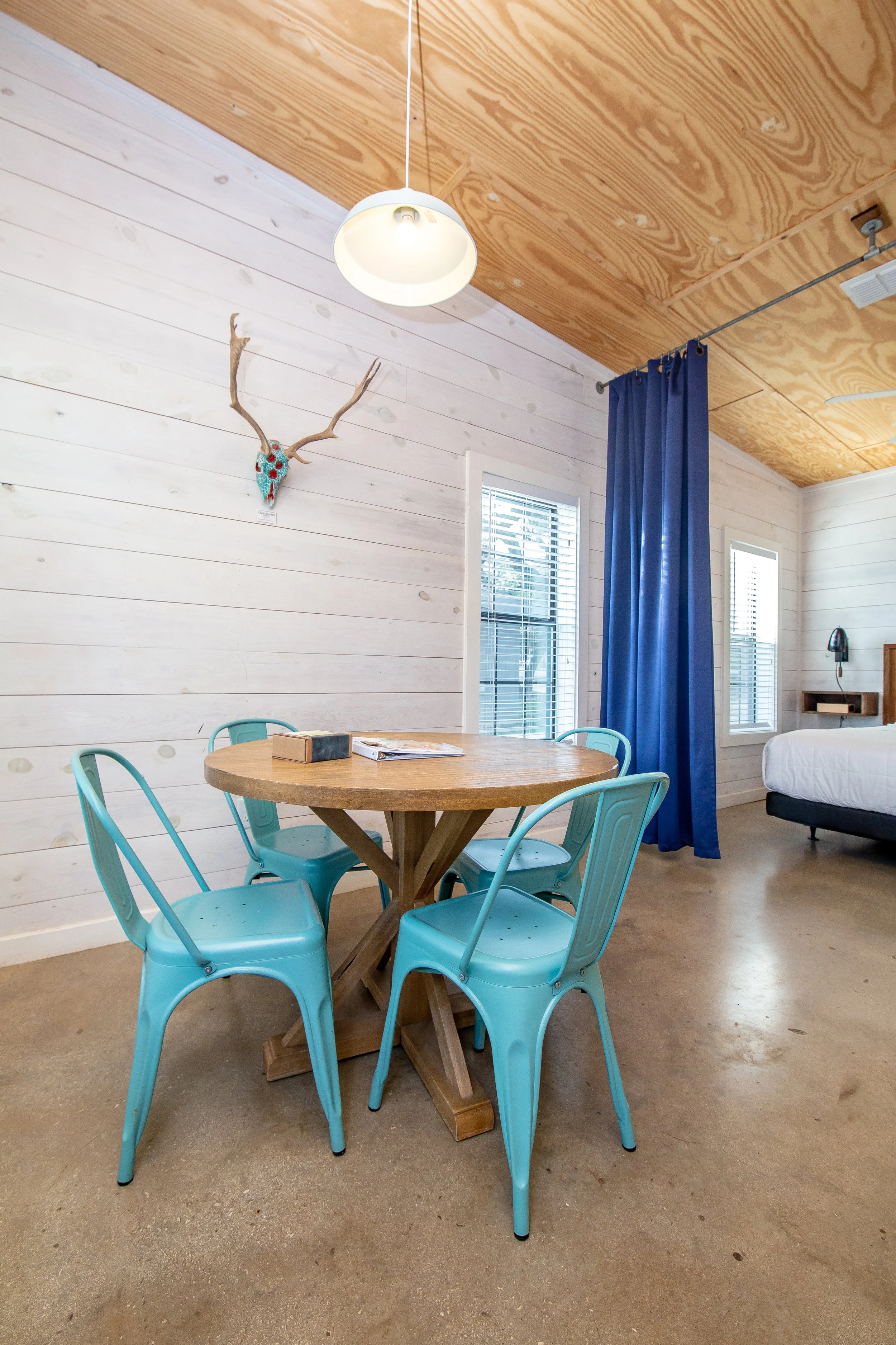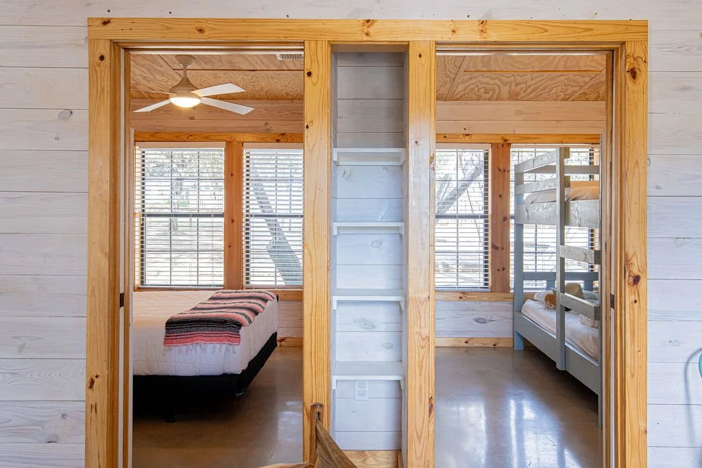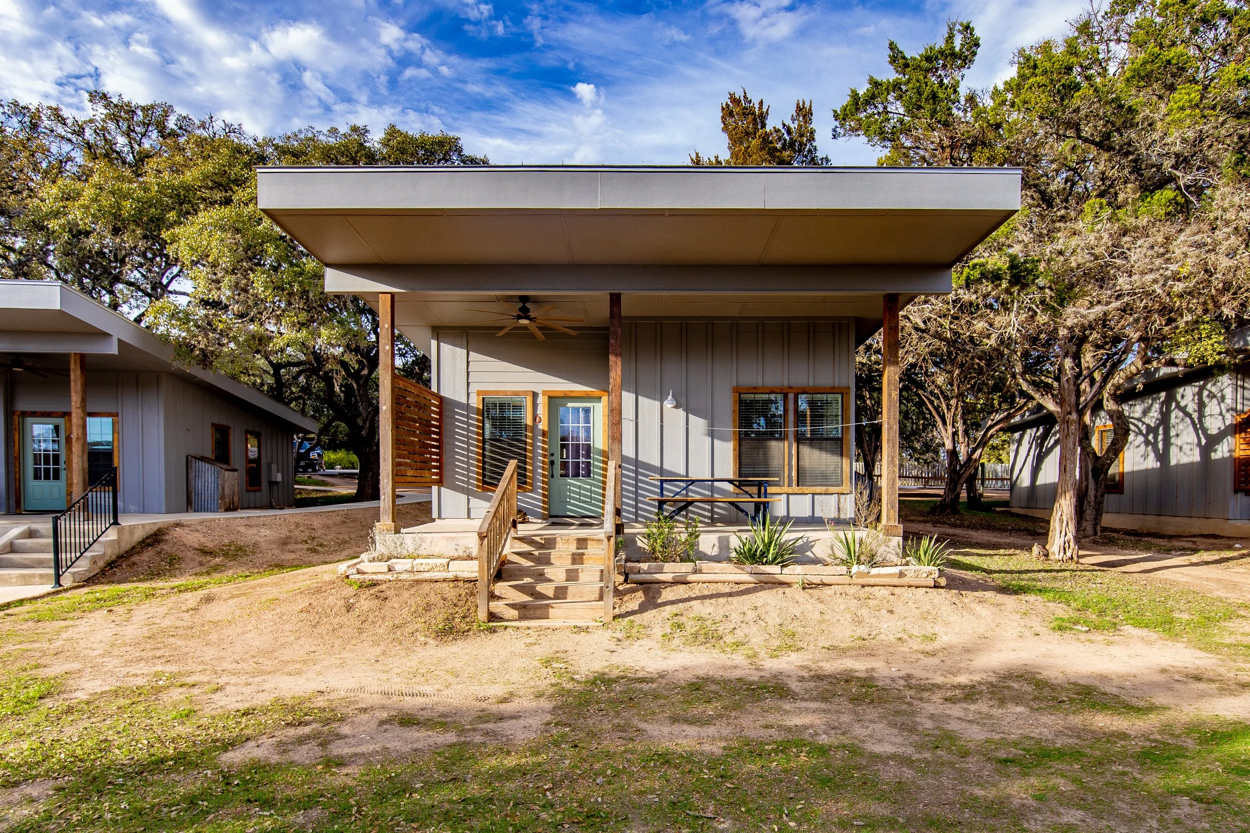 These brand new cabins were built in 2016 and offer all the modern amenities, with a touch of style - central AC, cable TV and kitchens. Our Cantina Cabins offer private bedrooms, water closets with showers separate from the bathroom sink and vanity, a cozy living area, are a short distance from the pool and offer expansive views of the spring fed Blanco River.